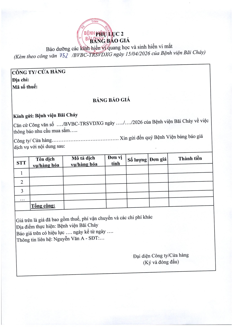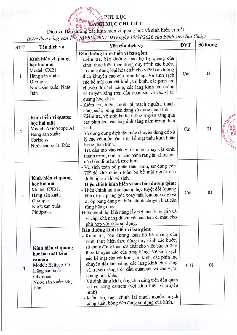 Thông báo số 752 về nhu cầu dịch vụ bảo dưỡng các kính hiển vi quang học và sinh hiển vi mắt 2026/04/17 02:40