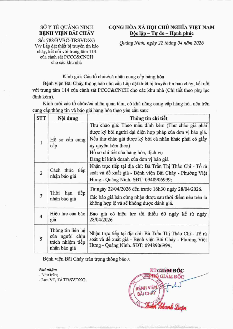 Thông báo số 788 về nhu cầu lắp đặt thiết bị truyền tin báo cháy, kết nối với trung tâm 114 của cảnh sát PCCC&CNCH cho các khu nhà Hôm nay 09:44